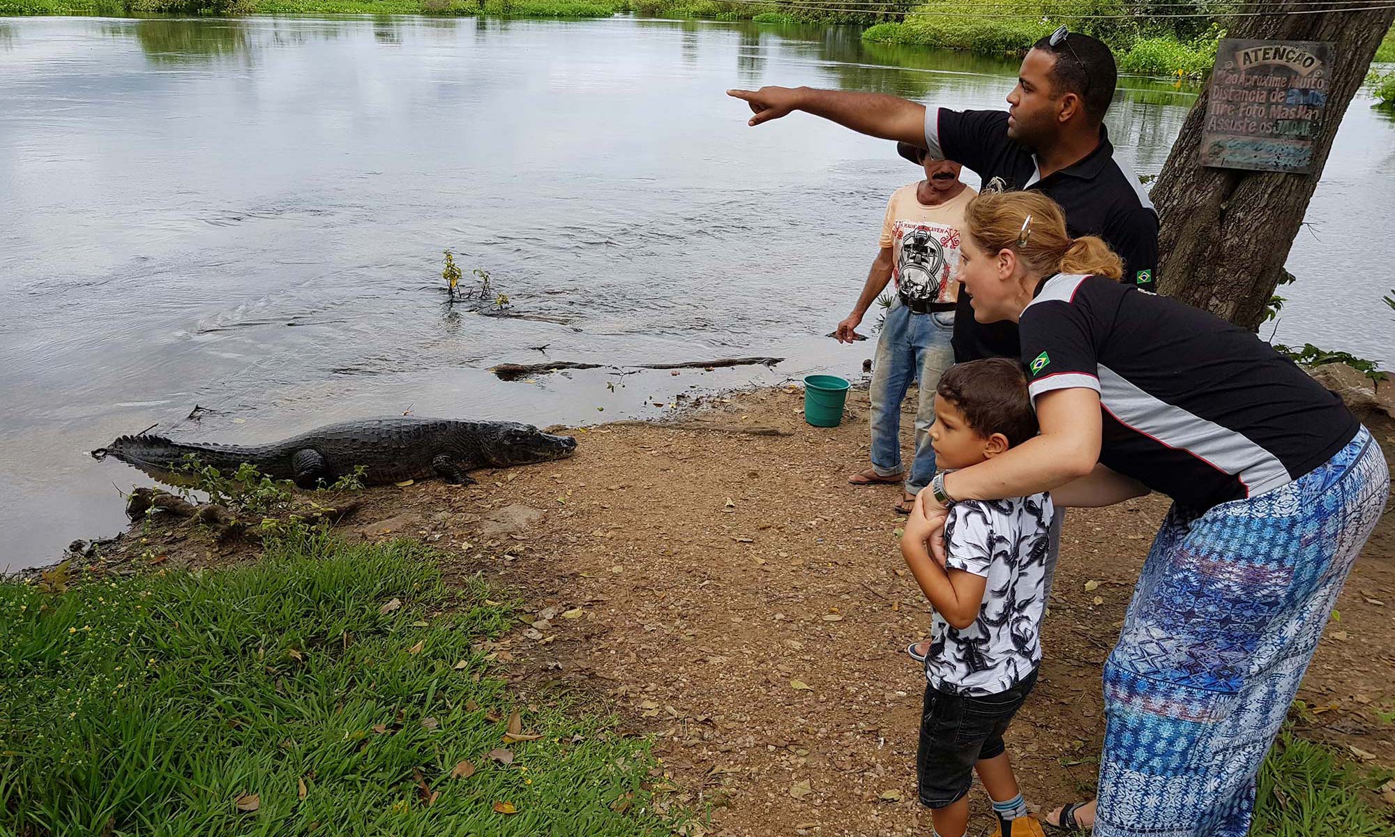 - Bezoek aan (en voeren van) de krokodillen van Maria Jacare.